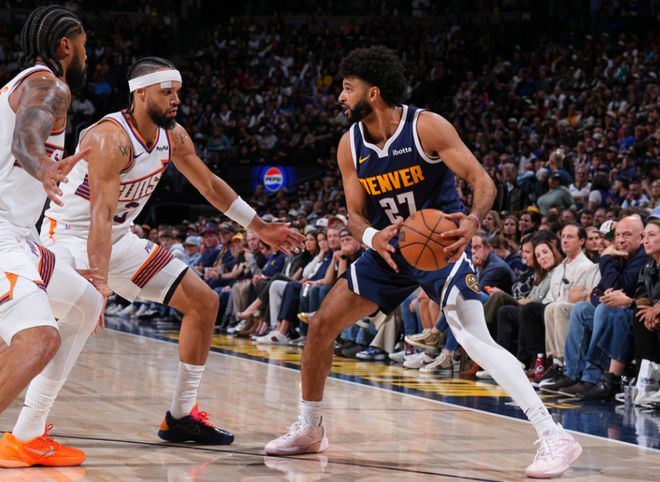 约基奇14+14+15连场三双!掘金7人上双大胜太阳 布克31+7